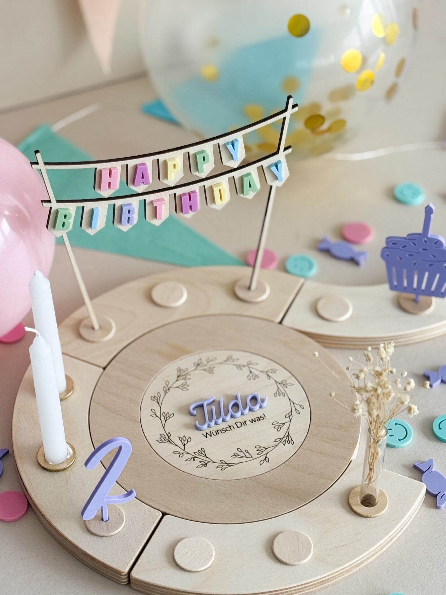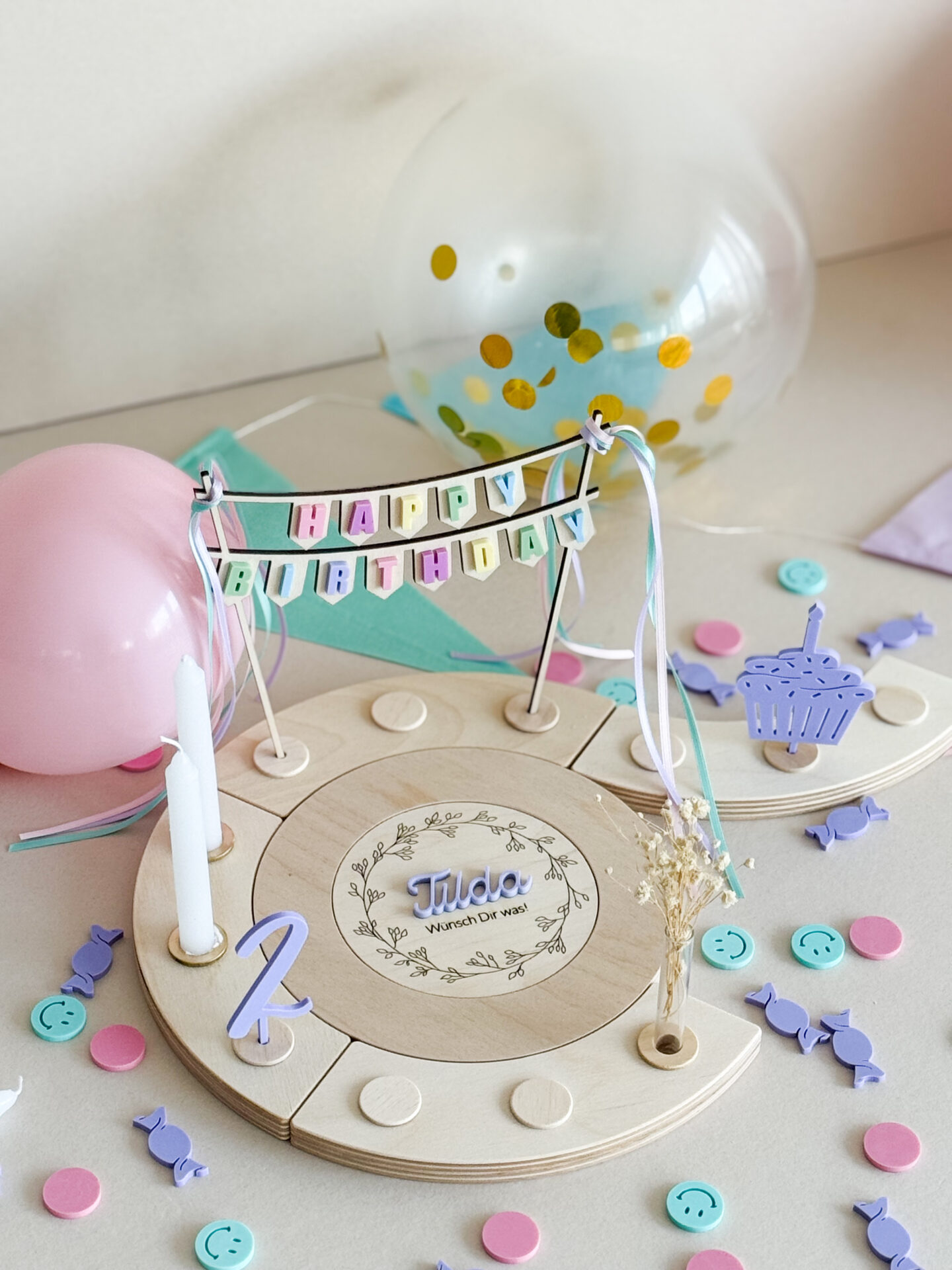 Mach den Geburtstagstisch zu etwas ganz Besonderem – mit unserem farbenfrohen „Happy Birthday“-Wimpelketten-Stecker für den Geburtstagskranz! 🌈