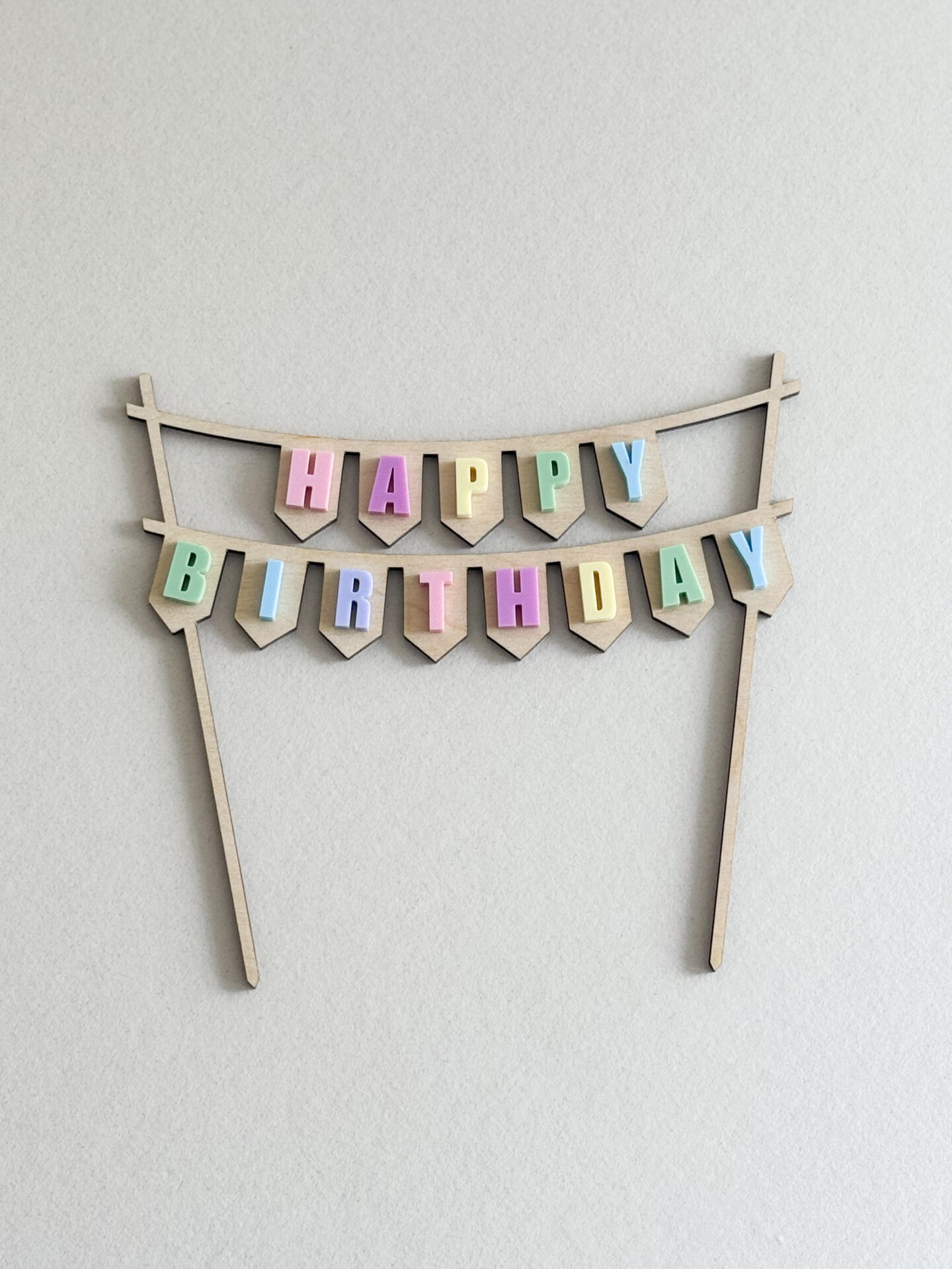 🎉 Happy Birthday Wimpelketten-Stecker – Pastellfarbenes Highlight für den Geburtstagskranz