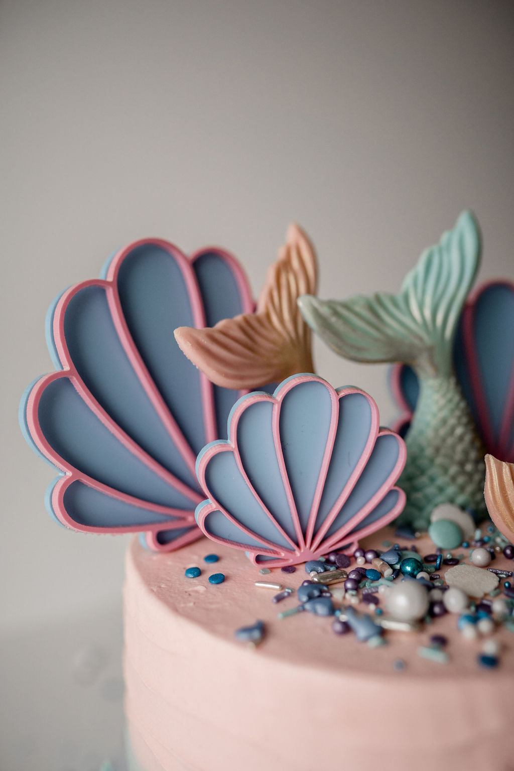 Muschel Cake Topper Set (3-teilig) aus Acryl – Meerjungfrauen Geburtstag