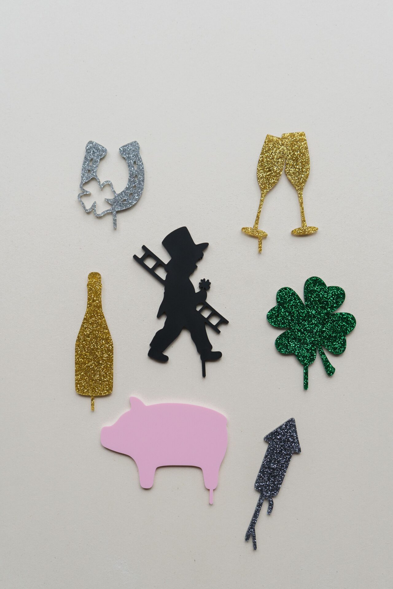 Wunderschöne Stecker passend für Silvester. Diese Stecker kannst du mit unserem Adventskranz bzw. Geburtstagskranz festlich dekorieren.